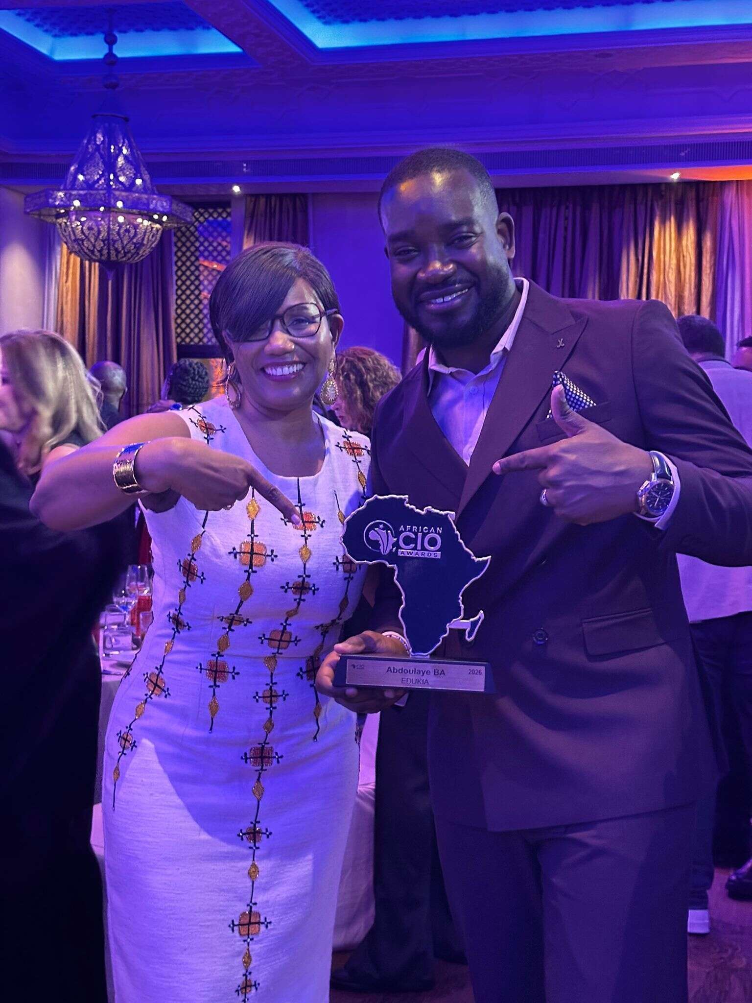 Abdoulaye Ba, promoteur de la startup EDUKIA, brandissant le trophée de la meilleure startup EdTech aux Africa CIO Awards 2026, décerné à Marrakech, en reconnaissance de l’innovation et de l’impact de la solution éducative portée par l’entreprise. – © EDUKIA.