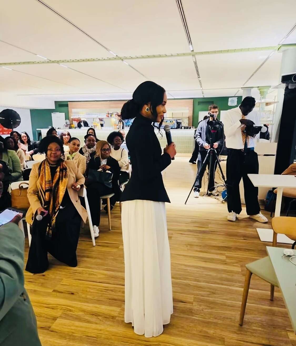 Ursula Mrs D. lors de la présentation de son ouvrage Cahiers d’un départ du pays natal au Grand Palais à Paris : un moment d’échange, de partage et d’inspiration autour de l’émancipation et du choix de soi. – © DR.