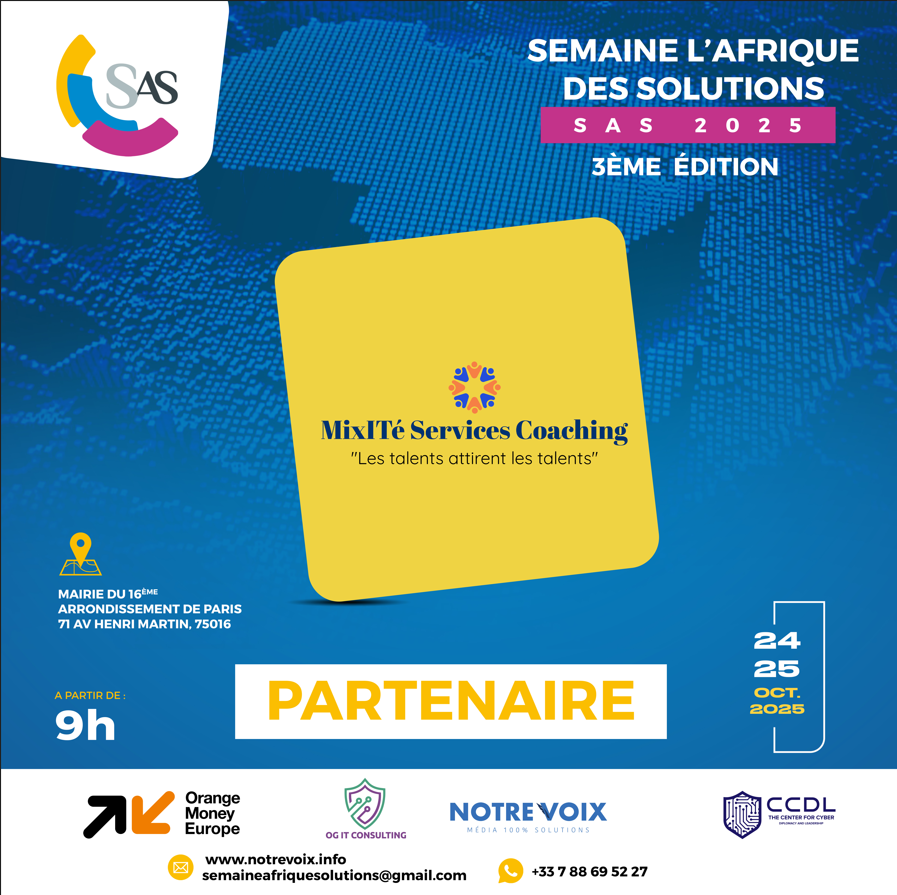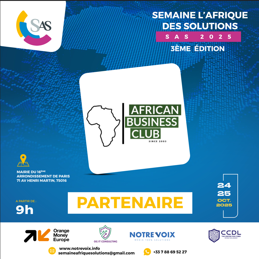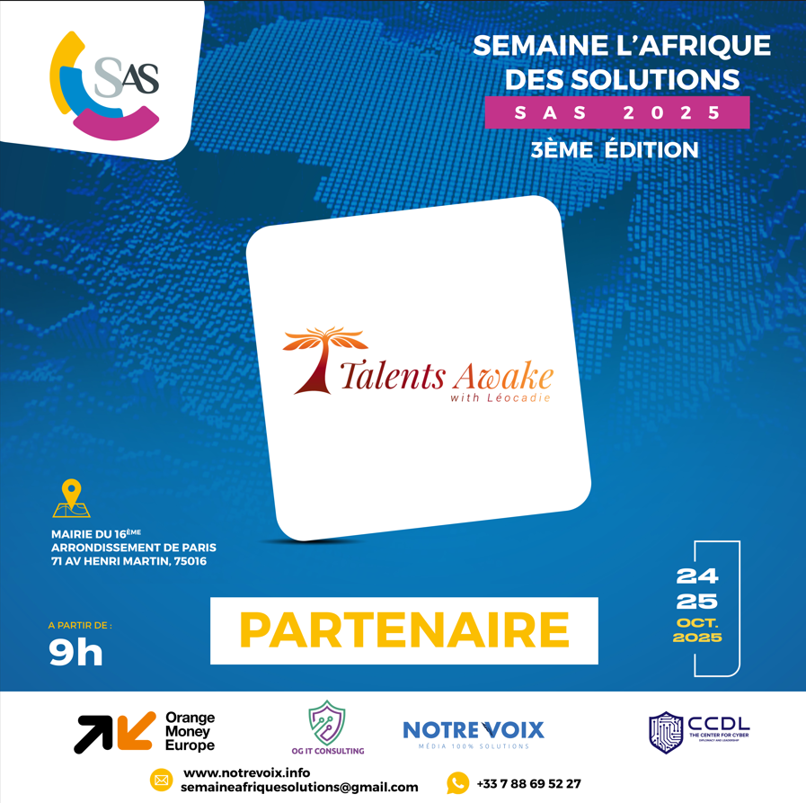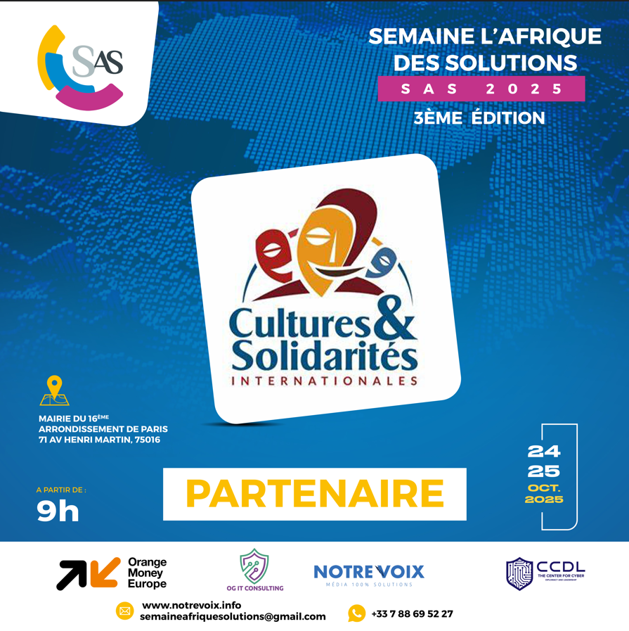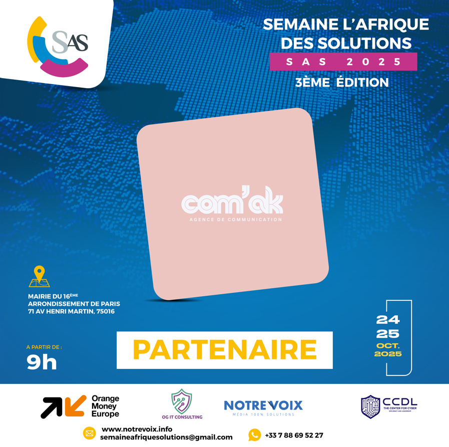 La 3ᵉ édition de la Semaine l’Afrique des Solutions (SAS), qui se tiendra les 24 et 25 octobre 2025 à Paris, n’aurait pas pu voir le jour sans la confiance et le soutien indéfectible de ses partenaires. Institutions, entreprises, médias, associations et personnalités engagées : tous se rassemblent autour d’une même vision, celle d’une Afrique créative, résiliente et tournée vers l’innovation. Grâce à leur engagement, ce rendez-vous international majeur prend une dimension exceptionnelle, en donnant une voix forte aux porteurs de solutions concrètes qui transforment positivement nos sociétés. Ensemble, nous faisons de la SAS 2025 bien plus qu’un événement : une véritable plateforme de solidarité, d’innovation et de coopération. Découvrez dès maintenant nos partenaires qui font de cette aventure une réalité !